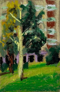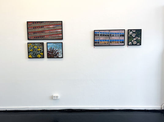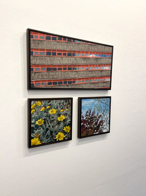 Nicholas Aplin’s new body of work titled (Nothing But) invites the viewer to complete the statement. The paintings, oil pastel sketches and sculpture present an elemental depiction of Melbourne’s housing commission towers, pairing them with vibrant flowers and trees.
